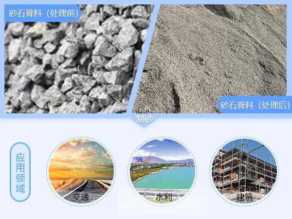 我國礦產資源豐富,許多山上開采下來的石料都可加工成沙子,能夠替代天然砂成為建筑、公路等領域的主要用砂。像鵝卵石、河卵石、青石、石灰石、石英石等等,這些石料在自然中存量非常大,本身其用途并不大,但是經過加工,制成人工砂,其使用價值就得到了提高。石料制砂一般要經過粗破、制砂、篩分、洗選等幾步作業流程。其工藝流程大概是這樣的:首先,石料由顎式破碎機進行初步破碎,然后破碎成的的粗料由膠帶輸送機輸送至對輥制砂機進行細碎,細碎后的石料進振動篩篩分出兩種石子,滿足制砂機進料粒度的石子進制砂機制砂,另一部分返料進細破。進對輥制砂機的石料一部分制成砂,經洗砂機(可選)清洗后制成成品砂,另一部分進制砂機再次破碎。整條石料制砂生產線設備主要由振動給料機、鄂式破碎機、對輥制砂機、振動篩、洗砂機、皮帶輸送機等設備組成。