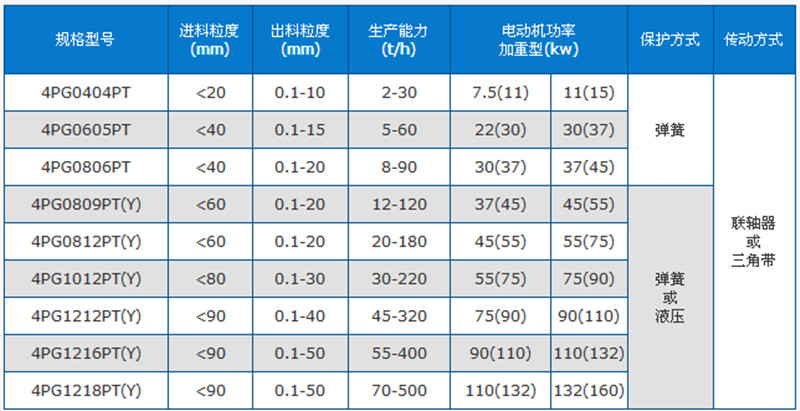 四輥破碎機配置四個碾輥,根據用戶需要的破碎粒度,分為兩種機型:
